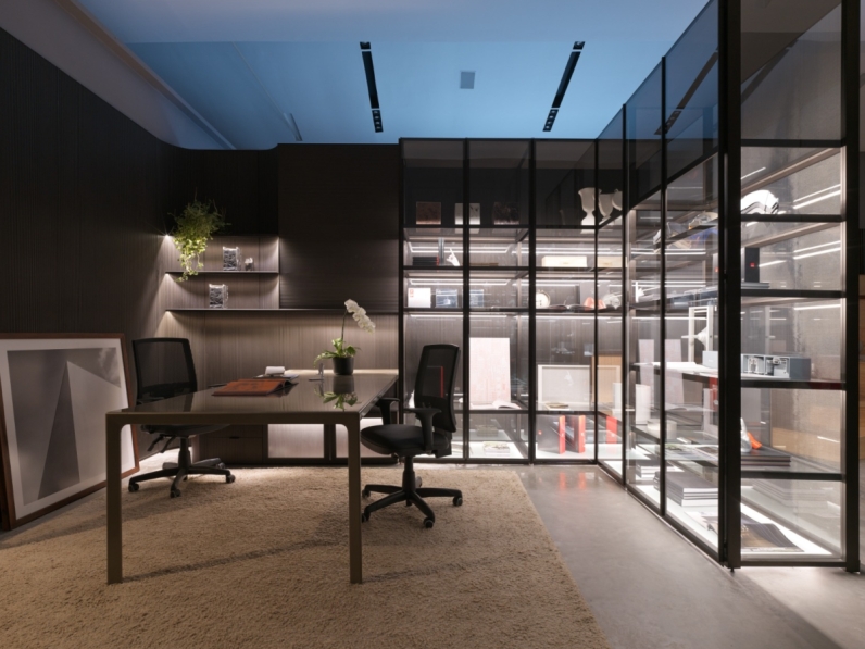 Armário essencialmente transparente, indicado para utilização em closets e dormitórios, como cristaleira e também para dividir ambientes.